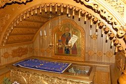 позолоченной резьбой, раку для мощей преподобного Иосифа