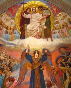 Почему не сказать мне коротко о важнейшем? Когда услышим сей великий глас и страшный вопль, который с высот небесных скажет: Се, Жених грядет (Мф.25:6), – се, приближается Судия, се, является Царь, се, открывается Судия судей, се, Бог всяческих грядет судить живых и мертвых! – тогда, христолюбцы, от вопля того содрогнутся основания и утроба земли от пределов и до пределов ее, и море, и все бездны, тогда на всякого человека, братья, придут теснота и страх, и исступление от вопля и звука трубы, от страха и чаяния того, что грядет на вселенную, ибо, по написанному, Силы Небесные подвигнутся (Мф.24:29). Тогда потекут Ангелы, соберутся лики Архангелов, Херувимы и Серафимы, и все многоочитые с крепостью и силой воскликнут: Свят, свят, свят Господь Бог Вседержитель, Иже бе и Сый и грядый (Апок.4:8). Тогда всякая тварь на небе, и на земле, и под землей с трепетом и крепостию возопиет: благословен грядый (Мф.21:9) Царь во имя Господне. Тогда раздерутся небеса, и откроется Царь царствующих, Пречистый и славный Бог наш, подобно страшной молнии, с силой многой и несравнимой славой, как проповедал и Иоанн Богослов, говоря: Се, грядет со облаки небесными, и узрит его всяко око, и иже Его прободоша, и плачь сотворят о Нем вся колена земная (Апок.1:7).