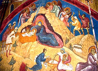 | Рождество Христово. Фреска монастыря Високи Дечани. |