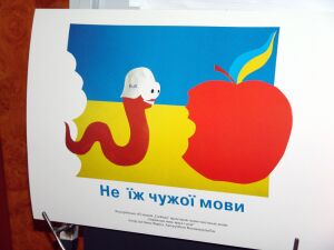 На одном из плакатов – фашистская каска с надписью RUS на голове у гигантского червя, поедающего Украину-яблочко, на другом – снова черви, но уже цвета русского флага, вылезают из книжки "Украiнська мова". Рука сбоку брызгает на них дихлофосом из баллона. Шершавым языком плаката вдалбливаются примитивные мифологемы: русские – враги, для украинцев они – угроза, нет русского – нет проблемы. На самом деле это и есть емкое выражение происходящей сегодня дерусификации. О том, насколько удачно она проводится свидетельствуют письма из Смелы – районного городка, находящегося в 30 км от Черкасс. Адресованы они… Впрочем, какая разница, кому они присланы? Привожу их просто как документ эпохи: