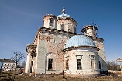 По дороге мы видели не одну полуразрушенную церковь. И на первый взгляд Николо-Теребенская обитель немногим от них отличается. Судьба ее схожа с историей десятков других монастырей и храмов, разбросанных по российским просторам. Существует красивое предание, согласно которому еще в конце XV века икона Николая Чудотворца указала место для строительства главной церкви монастырского ансамбля – Никольской. Несколько раз храм разрушали, но потом вновь возрождали. В нынешнем виде – с живописными фресками и высокой колокольней – церковь была отстроена и освящена в 1838 году. После революции храм надолго превратился в склад, а поэтому настенные росписи пришли в полное запустение. Восстанавливать комплекс начали в середине 90-х годов прошлого столетия. Подремонтировали церковь Благовещения, привели в порядок подземную церковь Александра Свирского. Никольской повезло меньше – то ли руки до нее не дошли, то ли денег не хватило. Впрочем, церковь сама напомнила о себе.