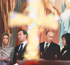 | Президенту Олимпийского комитета Леониду Тягачеву пришлось долго ждать сошествия Благодатного огня |