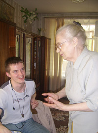 Под конец дня нас ждал приятный сюрприз: по последнему адресу жила настоящая «пасхальная бабушка», которая встретила нас и, приняв подарки, повела к столу с праздничным ужином. Быстро не получилось – да и не хотелось. Это тот редкий случай, когда историю ее жизни можно слушать бесконечно и при этом не заснуть. Когда-то она была медсестрой и целыми сутками дежурила выхаживая больных. А теперь стала одинокой старой бабушкой, у которой не осталось родных и близких. Естественно, помогающего ей добровольца она считает почти своим родным сыном. «Когда вы еще приедете? Только через год? Ох, ну что же вы ребята, сразу не говорите! У вас же много таких, как я. Ну да, все верно. Все правильно».