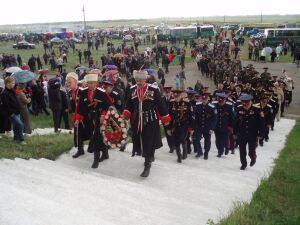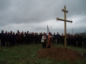 – Мы, казаки, считаем себя преемниками славы наших предков. Так же как русская община объявила воинские захоронения своим национальным достоянием, так же и мы, казаки, пообещали старикам никогда не забывать о том, что происходило в этих местах во время войны. Ветераны уходят, и скоро не останется живых свидетелей тех боев – а историю, мы будем изучать по книжкам, и мы знаем, как сейчас любят подменять понятия. Мы пообещали, что будем по мере своих сил и возможностей передавать знание последующим поколениям – сейчас на первый план выходит семья и казачья община – как носитель этой информации. А казаки – это войско Христово – и славные победы русских воинов – это в первую очередь победы православия. Поэтому и начинаем мероприятие не у вечного огня, а здесь, у поклонного креста…