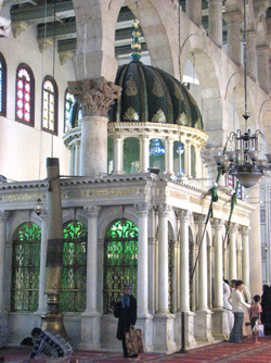 Часовня всегда закрыта, можно только приложиться к внешней решетке и посмотреть сквозь стеклянную стену на раку с мощами. Сверху на византийской по форме часовне – мусульманский полумесяц. Создается впечатление, что Иоанн Креститель заключен в темницу, и понятны становятся чувства крестоносцев, желавших освобождать христианские святыни. Мы приложились к оградке, спели величание. Окружавшие нас мусульмане смотрели на это с уважением и даже подбадривали нас – вот, мол, пришли люди не просто глазеть, как туристы, а молиться, хоть и по-чудному, с их точки зрения.