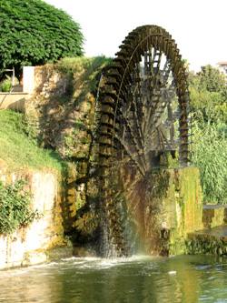 Обратный путь – почти по прямой. Только в Сирии заезжаем в город Хама на реке Оронт. Здесь уже 500 лет без остановки работают огромные деревянные водоподъемные колеса, которые всю Хаму снабжают водой по огромным акведукам. Как вечный двигатель: вода и крутит колесо, и поднимается с его помощью на 20-метровую высоту!