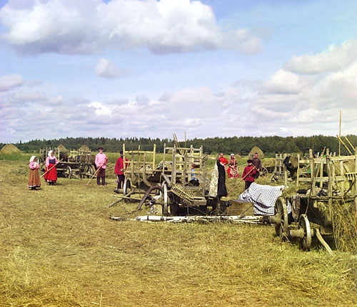 | На сенокосе около привала. 1909 г. Фото: С.М. Прокудин-Горский |