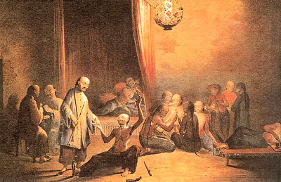 Таким образом, к концу 30-х годов XIX века употребление опиума сделалось страшной разрушительной силой китайского общества. Императорский двор был напуган тем, что опиум курили даже солдаты, необходимые для подавления народа. По свидетельству китайского деятеля того времени [1838] Хуана Цзюэцзы: »Начиная с чиновного сословия правительственных учреждений вплоть до хозяев мастерских и лавок, актеров и слуг, а также женщин, буддийских монахов и даосских проповедников все среди бела дня курят опиум, приобретают трубки и все принадлежности для курения опиума».