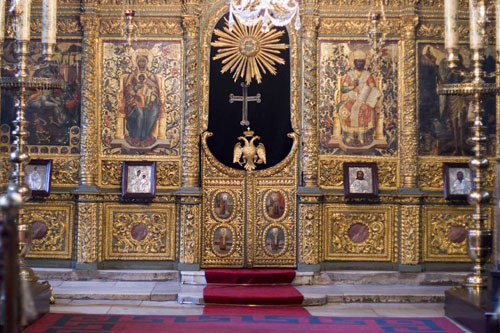| Храм в Патриархии. Двуглавый орел на Царских вратах - герб Византии |