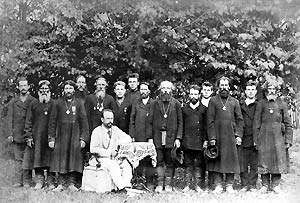 | Семья Осоргиных во Франции. I ряд: Тоня, Софья, протоиерей Михаил Михайлович, Лиза, Михаил. II ряд: Мария, Сергей, Ульяна |