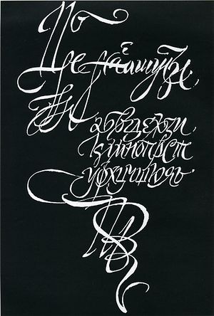 «Как-то я учил человека. которому было далеко за семьдесят. Он научился писать прекрасные буквы. Был академиком, членом зарубежных академий, народным художником, Заслуженным художником СССР. Он тяжело болел, было неизвестно, сколько он проживет с раком крови. Когда я пришел к нему, обратил внимание на очень красивые перья: