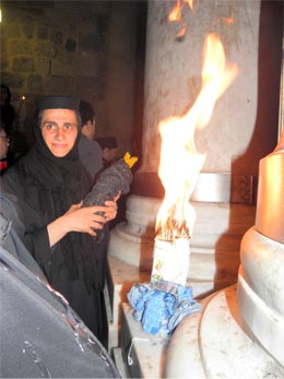 Незаметно приближалась Великая суббота. Конечно же, мы очень хотели попасть на Благодатный огонь, и все волновались. Известно ведь, что в Храм в этот торжественный момент может попасть лишь небольшая часть тех верующих, которые прибыли на празднование Пасхи в Иерусалим. А в этом году ещё и Пасха празднуется православными и католиками одновременно, так что наверняка католики, хотя и не признающие Благодатного огня, из любопытства попытаются попасть на церемонию (так и оказалось: в храме были иностранцы, явно не православные, с любопытством и даже радостью наблюдавшие за схождением Огня). Но у меня почему-то не было особых переживаний, что мы на чудо схождения Огня не попадём.