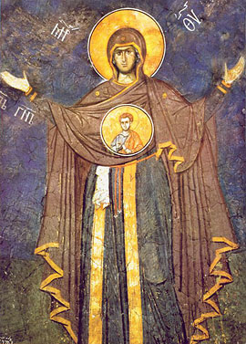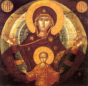 Икона Божией Матери «Влахернитисса». Сер. XIII в. Монастырь св. Екатерины. Синай