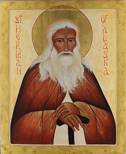 «Тяготы природы претерпев, холод бурь, ветра и голод, стяжал еси мир душевный, теплоту и сытость, сделался неподвержен стихиям, истинно небесный человек и земной ангел, о дивный Герман, желая достойно чтить тебя, восклицаем: радуйся, победителю природных невзгод! Радуйся, воссиявший добродетелями! Радуйся, преподобный отче Германе, радость всей Америки и Аляски украшение!