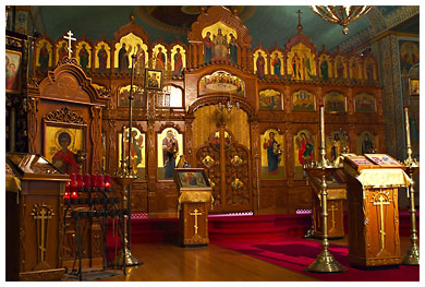 В каждом православном храме перед алтарем стоит иконостас. Иконостас означает «стойка для икон» и он может элементарно представлять собой большую икону Христа справа и икону Богородицы с младенцем слева. В более обустроенном храме алтарь может представлять собой украшенную иконами перегородку. Некоторые типы иконостасов закрывают алтарь от взоров, кроме тех моментов, когда центральные врата открыты.