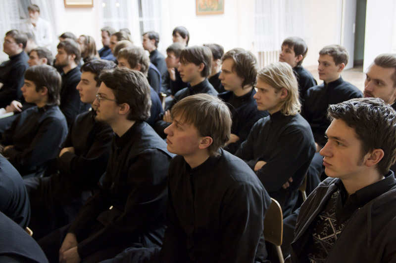Вечером в актовом зале семинарии состоялась студенческая конференция на тему: «Допустимое и неприемлемое в церковной миссии сегодня», которую возглавил ректор семинарии архимандрит Тихон (Шевкунов). Среди гостей присутствовал старейший клирик Грузинской Православной Церкви архимандрит Антоний (Гулиашвили). С докладом выступил студент 3-го курса Ярослав Пантак. Он рассказал о миссии на рок-концертах, среди байкеров и других субкультур, сопровождая свой рассказ показом видеофрагментов и наконец об использовании современного искусства для миссионерства. Доклад вызвал живую дискуссию. Студенты обратили внимание, что в представленных видеоматериалах не было сказано ни одним из миссионеров ни одного слова о Христе, задавались вопросы: «Какова цель проповеди?; Как мы будем говорить о Евангелии, не упоминая Христа?; Почему никто не проповедует в театре? Где грань экспериментальной проповеди?»