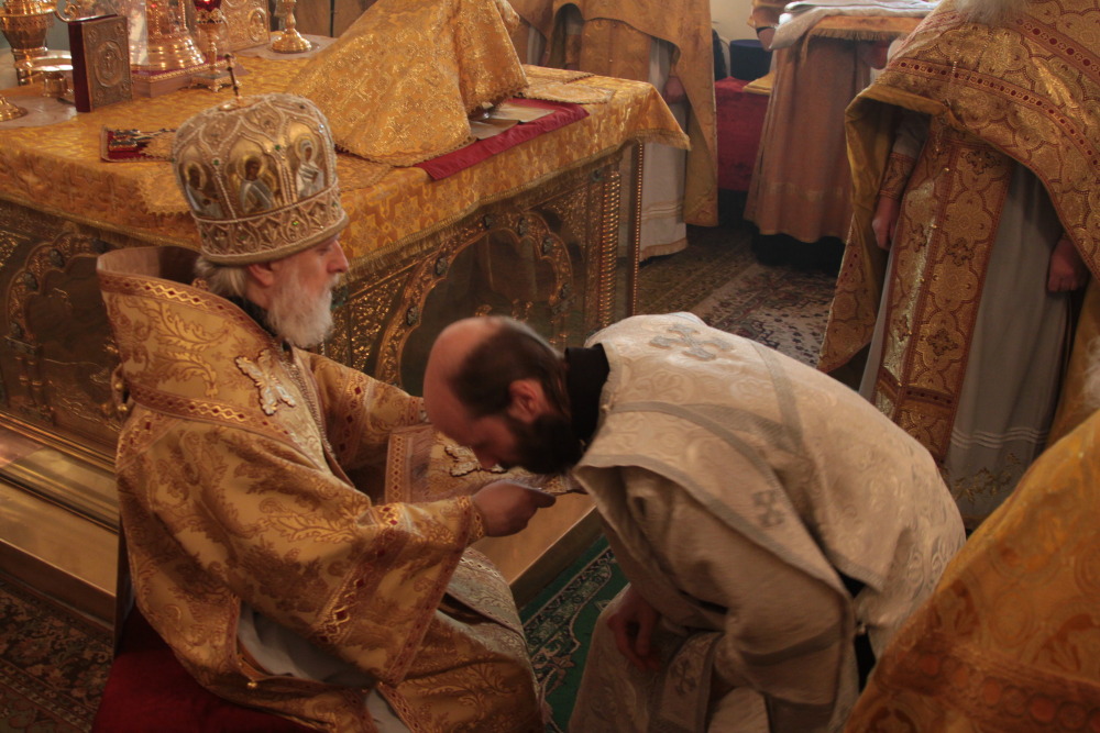 Утром был братский молебен, который служил наместник монастыря о. Тихон. Он же и возглавил Божественную литургию