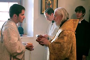 Сегодня в Никольском соборе Николо-Перервинского монастыря архиеп. Верейский Евгений совершил 2 хиротонии воспитанников Сретенской Духовной семинарии. Студент 5-го курса диакон Михаил Волков был рукоположен во пресвитера, а студент 4-го курса Георгий Ключников – во диакона.