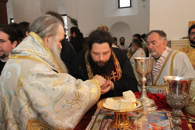 Божественную литургию, на которой была совершена епископская хиротония избранного и нареченного епископа Феодосия, совершил Его Святейшество Патриарх Сербский Павел в сослужении 17 архиереев, 2 новоизбранных и нареченных викарных епископов, множества священников и диаконов. Перед началом литургии нареченный епископ Феодосий прочитал Исповедание веры и Архиерейскую клятву перед патриархом, епископами, духовенством и народом. После епископской хиротонии владыка Феодосий преподал свое первое архипастырское благословение народу, наполнившему монастырский храм в Высоких Дечанах.
