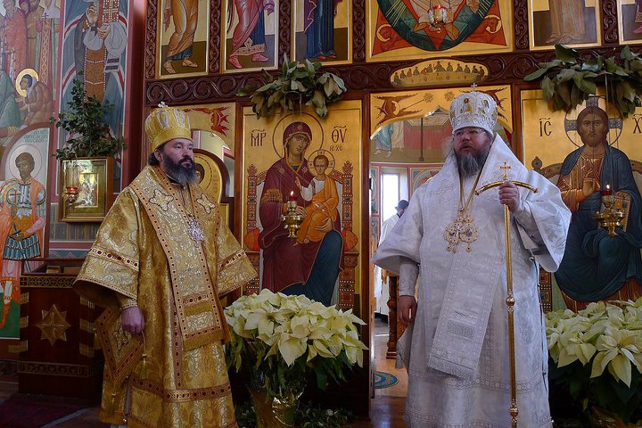 Among those concelebrating the Divine Liturgy with Metropolitan Jonah was His Eminence, Archbishop Justinian of Naro-Fominsk, Administrator of the Patriarchal Parishes in the United States. Archbishop Justinian relayed warm greetings from His Holiness, Patriarch Kirill of Moscow and All Rus, together with his personal greetings and words of encouragement for Metropolitan Jonah's ministry. He also presented a statue of Saint Tikhon of Moscow to Metropolitan Jonah.