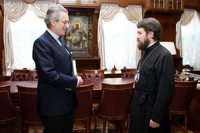 Посол Италии поблагодарил Владыку за прием и с теплотой вспомнил об их встрече, состоявшейся в прошлом году в Риме во время визита митрополита Илариона в Италию.