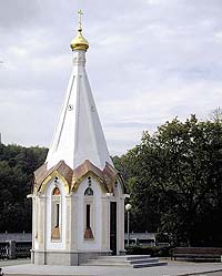 Белокаменная часовня, расположенная на берегу Москвы-реки, создавалась на пожертвования работников олимпийского комплекса и российских спортсменов.