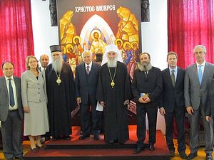 На приеме присутствовали также митрополит Черногорско-Приморский Амфилохий, епископ Бачский Ириней, министр культуры Греции Павлос Геруланос, заместитель министра иностранных дел Греции Спиридон Кувелис, министр культуры Сербии Предраг Маркович и посол Греции в Сербии Димостенис Стоидис.