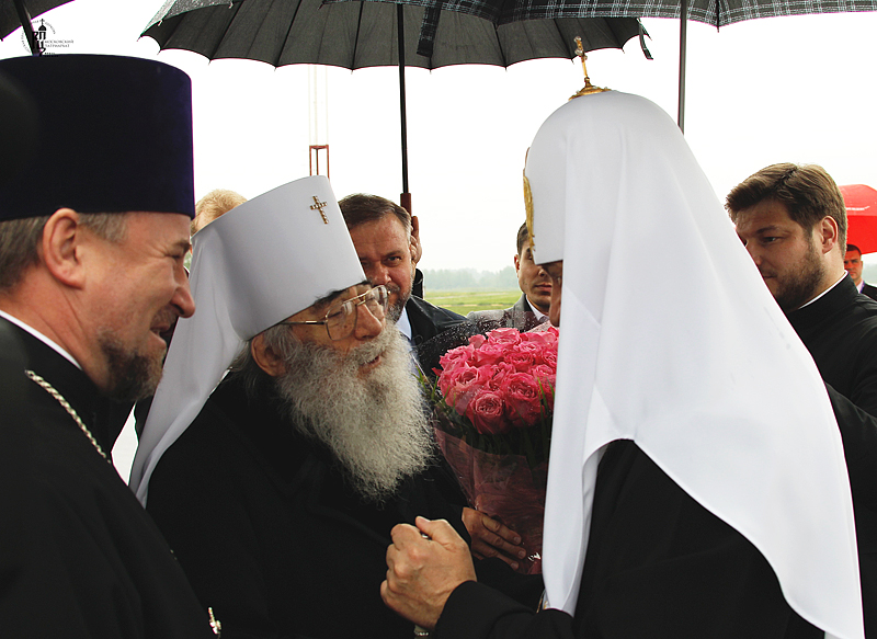 В аэропорту Пулково-1 Предстоятеля Русской Православной Церкви встречали митрополит Санкт-Петербургский и Ладожский Владимир; викарные архиереи Санкт-Петербургской епархии: епископ Гатчинский Амвросий, ректор Санкт-Петербургской духовной академии и семинарии; епископ Петергофский Маркелл; епископ Выборгский Назарий, наместник Александро-Невской лавры в честь Святой Троицы; духовенство Санкт-Петербургской епархии.