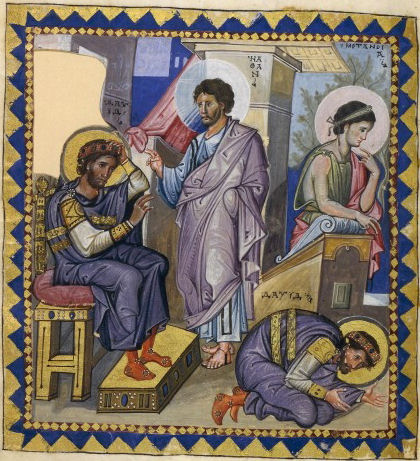 Пророк Нафан обличает Давида. Парижская псалтирь