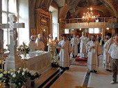 По окончании Литургии архиепископ Арсений совершил панихиду у гробницы Святейшего Патриарха Алексия. Затем владыка обратился ко всем собравшимся с архипастырским словом о приснопамятном Предстоятеле, передаёт Патриархия.ru.