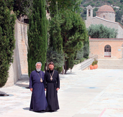 В тот же день Блаженнейший Архиепископ Хризостом и митрополит Иларион посетили монастырь святого Неофита. Они приняли участие в праздновании дня тезоименитства игумена обители епископа Леонтия. Среди собравшихся в монастыре иерархов Кипрской Церкви были, в частности, митрополиты Пафский Георгий и Тамасосский Исаия, епископы Месаорийский Григорий и Арсинойский Нектарий. После обеда председатель ОВЦС осмотрел монастырь и посетил пещеру, где в XII веке подвизался преподобный Неофит. В келии сохранились фрески, написанные еще при жизни святого.