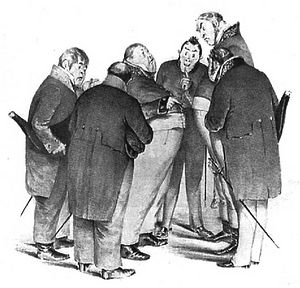Далее по сюжету, известному со школьных лет, последовало незаконное распечатывание и прочтение хлестаковского письма, произведшее эффект разорвавшейся бомбы. Компания чиновников слышит о себе самые нелестные выражения. Один – «сивый мерин», другой – «подлец и пьет горькую», третий – «свинья в ермолке». Следует череда подробностей, изложенных со смаком. Вот так же, хихикая и торопясь, бежал, вероятно, Хам к братьям рассказать об увиденной отцовской наготе. Радость, рожденная чужим позором, торопливые потуги всем побыстрее об этом рассказать. Была бы у Хама «трибуна», на подобие газетной полосы или телевизионной передачи, он, не задумываясь, взошел бы на эту трибуну.