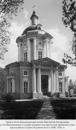 Вы помните, вероятно, о том, что преподобный Сергий, явившийся старцу Захарии (схиархимандриту Зосиме), говорил ему, чтобы тот оставил Лавру, и когда отец Захария спросил: «А как же мощи?», преподобный Сергий сказал ему, что мощи останутся здесь, но благодать отыдет. В своих мемуарах Сергей Иосифович Фудель[20] упоминает о том, что преподобный Сергий явился старцу отцу Алексию Зосимовскому, последние дни жизни жившему в Загорске[21]. И ему преподобный Сергий сказал, что воля Божия такова, чтобы его мощи оставались в поругании. Перед самой войной мощи преподобного Сергия были вновь помещены в Троицком соборе в раке.
