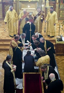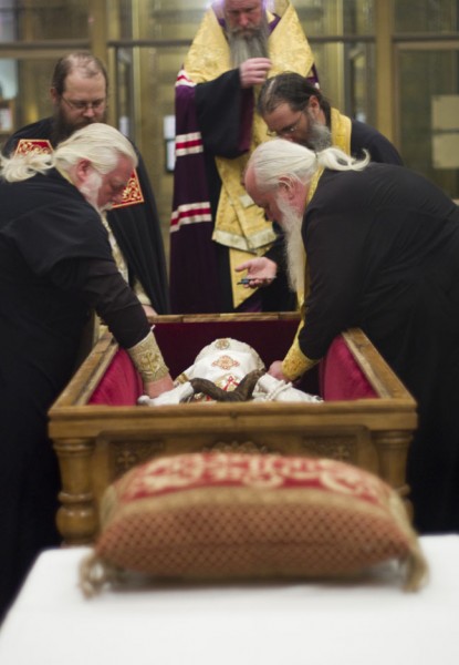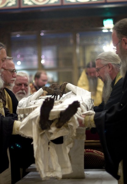 On Tuesday, October 25, 2011, the relics of St. John of Shanghai & San Francisco were re-vested by the assembled clergy of the Western American Diocese of the Russian Orthodox Church Outside Russia. I was privileged to be present at and to participate in this rite and would like to share it with the members of our diocese and my parishioners.