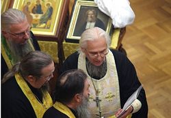 The rite was announced to us during the morning session of our Pastoral Conference, during which Archimandrite Irenei (Steenberg) described the rubrics for the service. At Vladyka Kyrill’s suggestion, most of the clergy fasted from lunch that day to prepare for the service. All the clergy had Confession during the evening Vigil and exchanged forgiveness with each other.