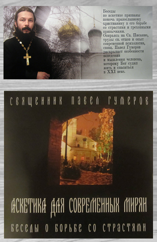 Разворот и обложка диска Сретенский монастырь выпустил диск «Аскетика для современных мирян» с аудиозаписью бесед по нравственному богословию священника Павла Гумерова. Беседы проводились с прихожанами храма святителя Николая на Рогожском кладбище города Москвы.