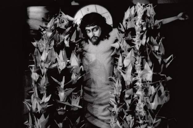 Вверху Распятие в храме города Сендая украшено бумажными журавликами, которые прислали в знак поддержки верующие с Сахалина