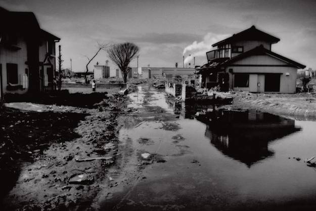 За год после цунами город Исиномаки почти не изменился. На протяже-нии полу-километра от берега моря одна лишь грязная и голая земля, Пейзаж бодрят лишь яркое весеннее солнце и улыбающиеся японцы