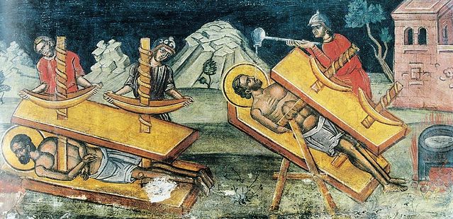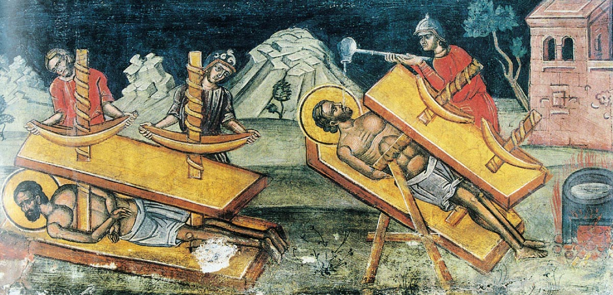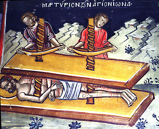 | Мучение свв. Ионы и Варахисия.Тзортзи (Зорзис) Фука. Фреска. Афон (Дионисиат). 1547 г. |