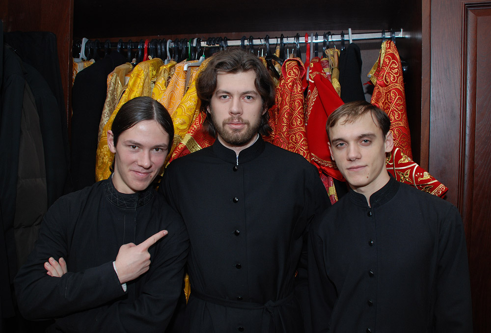| Алексий Веретельников с друзьями на послушании ризничего. Фото: Антон Поспелов |