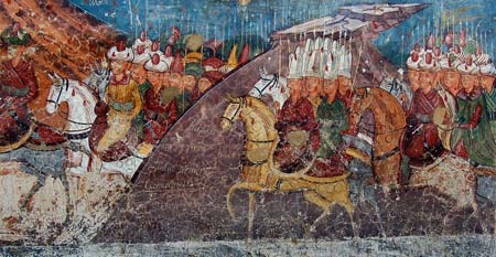 Однако Константинополь не сдаётся, его обороняет настоящая «интербригада», то ли сборище проходимцев, то ли дружина героев. Вот православные монахи стоят на одной стене вместе с турецким принцем Орханом, претендентом на султанский престол, и его приближёнными — принц будет драться отчаянно, ничего, кроме смерти, от соплеменников он не ждёт и не получит. На главных направлениях обороны — генуэзцы под управлением известного «рыцаря удачи» Джустиниани, молодые красавцы в кованых доспехах. Вот стоят греческие воины и ополченцы (всего в городе оказалось 4973 мужчины, способных носить оружие, — для защиты стен требовалось в десять раз больше); а тут критские моряки, венецианские стрелки, каталонцы, дружина Димитрия Кантакузина, Никифора и Феофила Палеологов, то ли немецкий, то ли шотландский инженер Грант с добровольческим отрядом, испанский рыцарь дон Франсиско Толедский, Иоанн Далмат... И всем этим пёстрым, смешанным (даже смешным) войском руководит последний император Византии Константин XI. Сын Елены, да ещё и Константин — понятно, что исторический «круг» должен замкнуться именно сейчас, — об этом перешёптываются все горожане — Второй Рим повторяет судьбу Первого, где последним императором стал Ромул Август — тёзка основателя Вечного города.