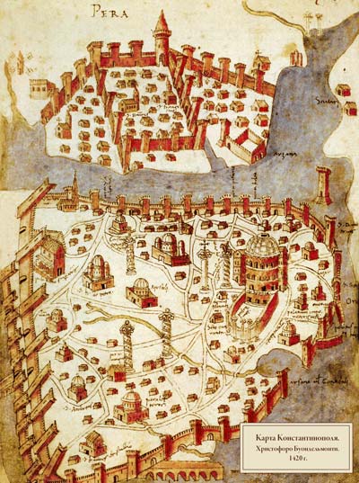 ...Многие жители имперской столицы были настроены скептически — полагали, что добровольное (и, видимо, неизбежное) подчинение султану лучше, чем лукавый, бесплодный «союз» с латинянами; кроме того, жители столицы уже стали обывателями, «шляпами» (византийское войско давно комплектовалось за счёт наёмников). Да и каково им было, бородатым, горбоносым, в массе своей не очень молодым обитателям «константинопольского сада», обременённым семьями: вот среди лопухов копается внучка, а вот сын залез на развалины императорского дворца, и вниз сыпется песок, — каково было им представлять, что их семьи после взятия города будут проданы в рабство... В особенности у покупателей популярны отроки, мальчики и девочки, — это и есть настоящее сокровище умирающей империи, которое потом разойдётся по гаремам, потому что обитатели павшего города (сдавшегося — нет) по праву становятся добычей победителя...