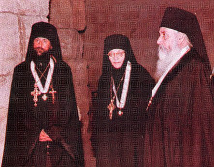 | Архимандриты Антоний (Граббе) и Димитрий (Биакай) с игуменией Тамарой |