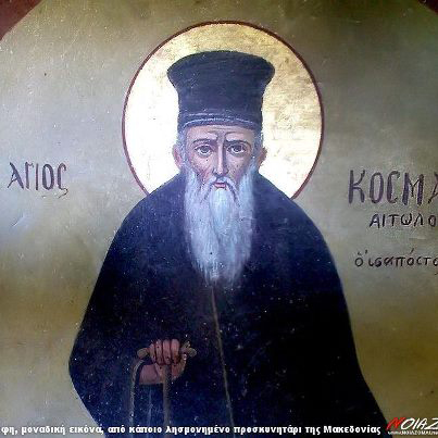 11. Большое внимание Косма Этолийский уделил сохранению народных обычаев. Чтобы греки отличались от турок, Косма советовал мужчинам не носить длинные кисточки и фески, а также не брить головы, а женщин призывал надевать платки (Святой раздал слушательницам более четырехсот тысяч косынок и платков). Благодаря его деятельности сегодня белый платок – устоявшийся элемент народной одежды Эпира.