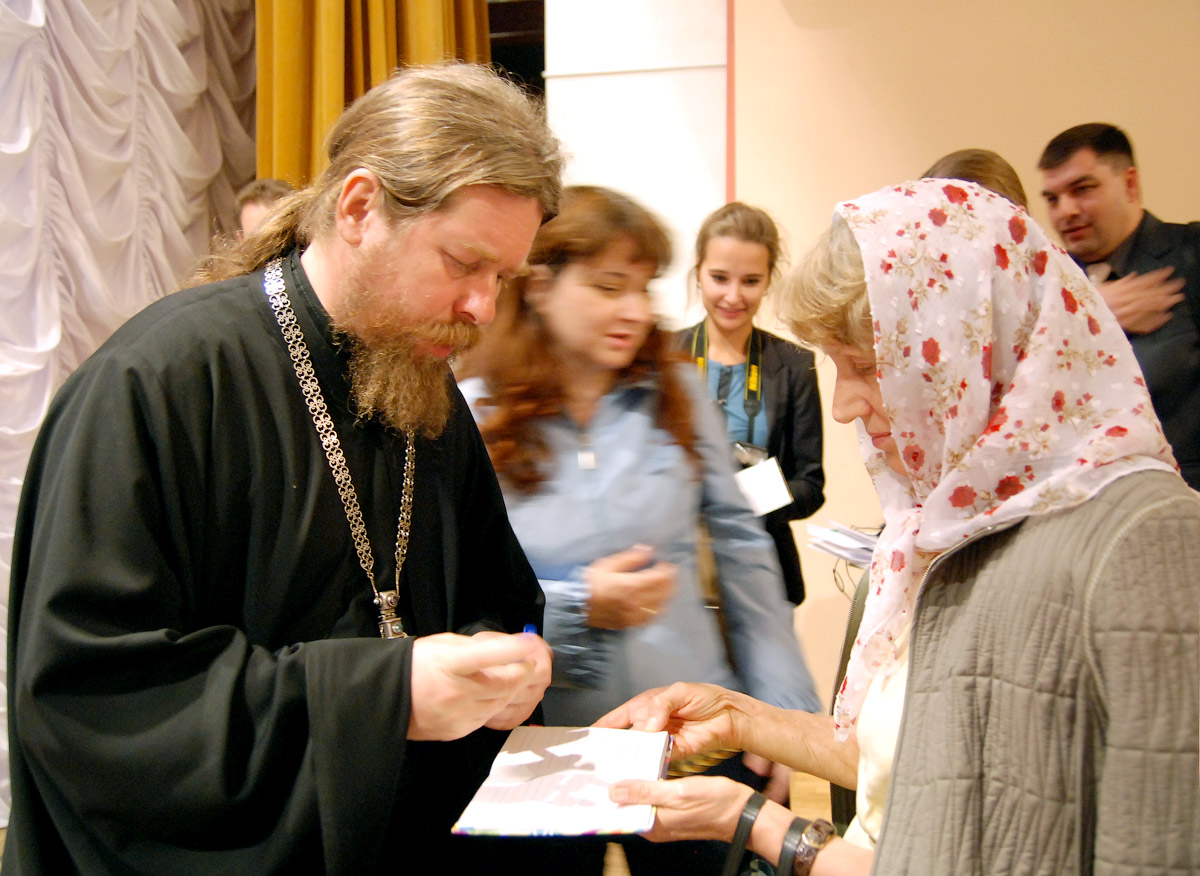 11 сентября 2012 года в здании Астраханской государственной филармонии состоялась встреча архимандрита Тихона (Шевкунова), наместника Сретенского монастыря г. Москвы, с жителями города.