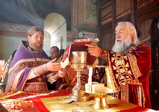 На литургии в Иоанно-Предтеченском монастыре Астрахани