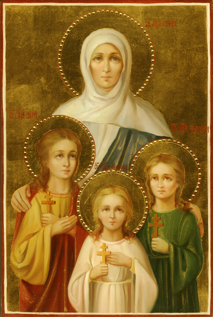 Эти святые мученицы жили в Италии в правление императора Адриана (117–138). Они происходили из богатой и благочестивой семьи. Мать трех дочерей София, имя которой означает «премудрость», воспитала чад в вере, надежде и любви к ближним.