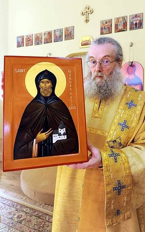 | Икона преподобного Вандрегизила Фонтенельского, написанная для храма в честь иконы Божией Матери «Всех скорбящих Радосте» в Меттинхэме. Фото: Джеймс Басс |