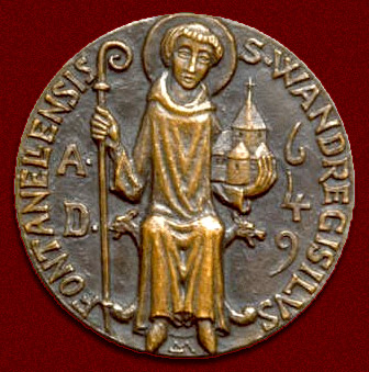 Вандрегизил, не перестававший черпать из неиссякаемого источника смирения и всегда желавший оставаться вдали от мирских дел, стал ждать, когда Господь укажет приуготовленное для него место, где бы он мог жить в послушании святому уставу. И действительно, Господь предназначил ему такое место, где этот добрый пастырь смог пасти большое стадо Христово. Святой поселился рядом с бьющим из-под земли источником Ла-Фонтенель, в лесу Жумьеж, на земле, купленной на деньги, любезно пожалованные королевским домом. Здесь святой основал свой монастырь[18], построив его из духовных камней – то есть святых душ. Здесь воздвиг он храмы во имя святого Петра, святого Павла и святого Лаврентия; чуть дальше, примерно в миле от монастыря, он построил часовню во имя святителя Аманда Родезского[19], которому часто молился[20].