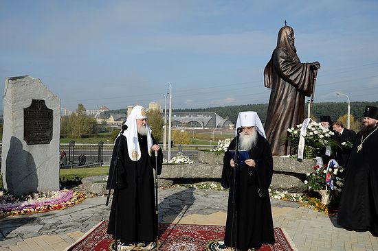 Святейший Патриарх Кирилл снял покрывало с памятника и окропил скульптуру освященной водой. Была возглашена «Вечная память» приснопамятному Святейшему Патриарху Алексию II. Пели мужской хор Всехсвятского прихода (регент — Ю. Куйчик) и Государственная академическая хоровая капелла имени Г. Ширмы (руководитель Л. Ефимова).